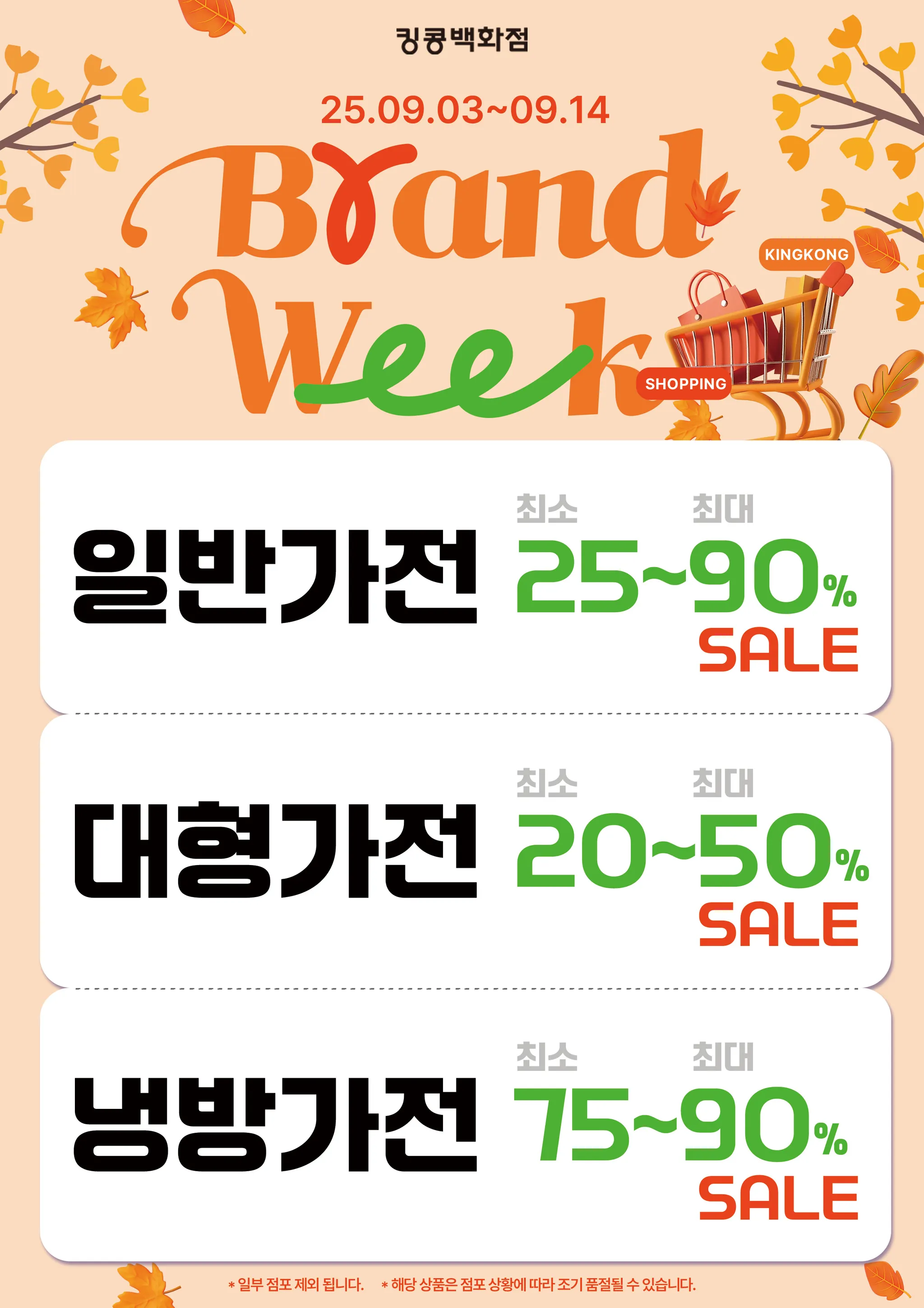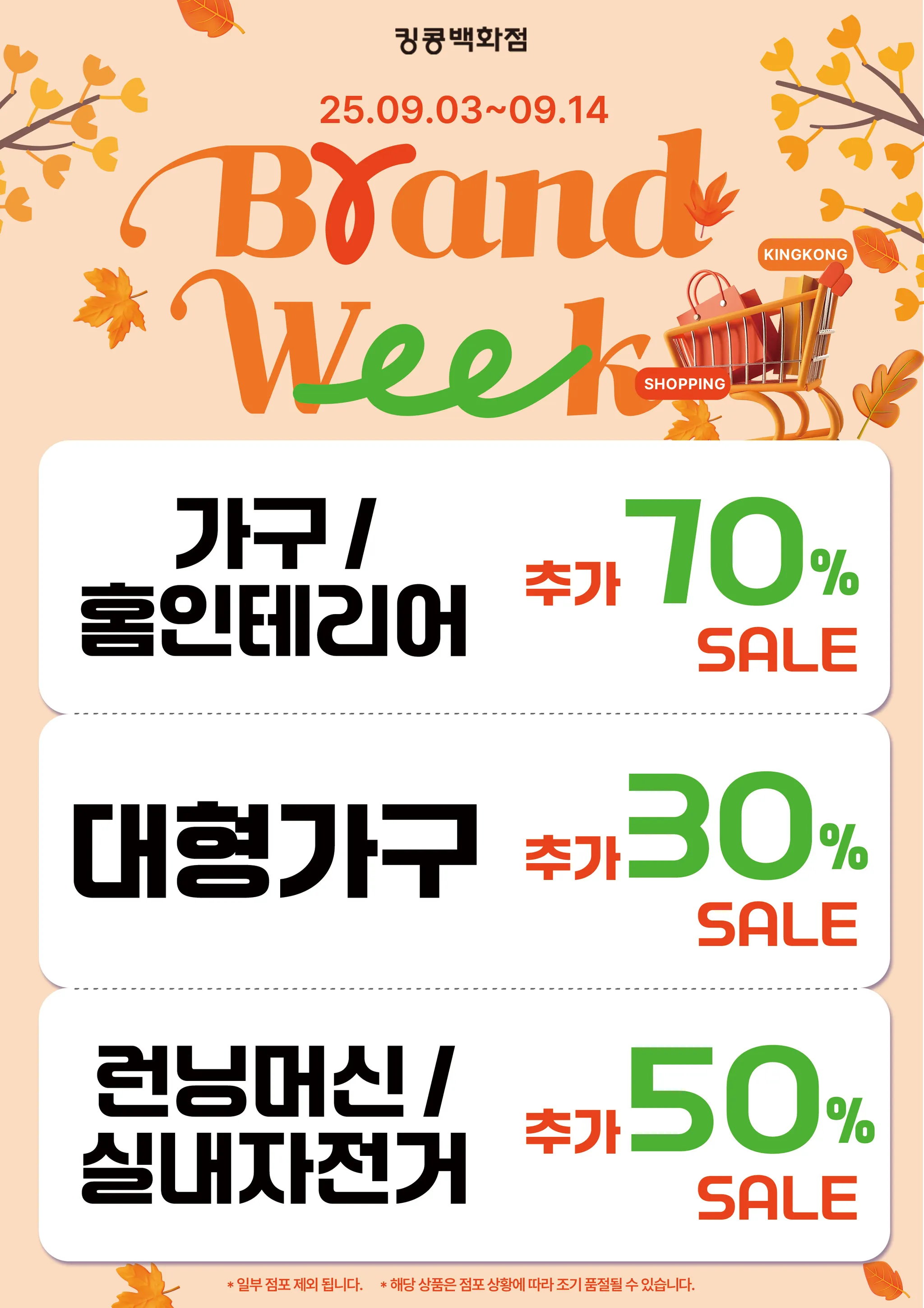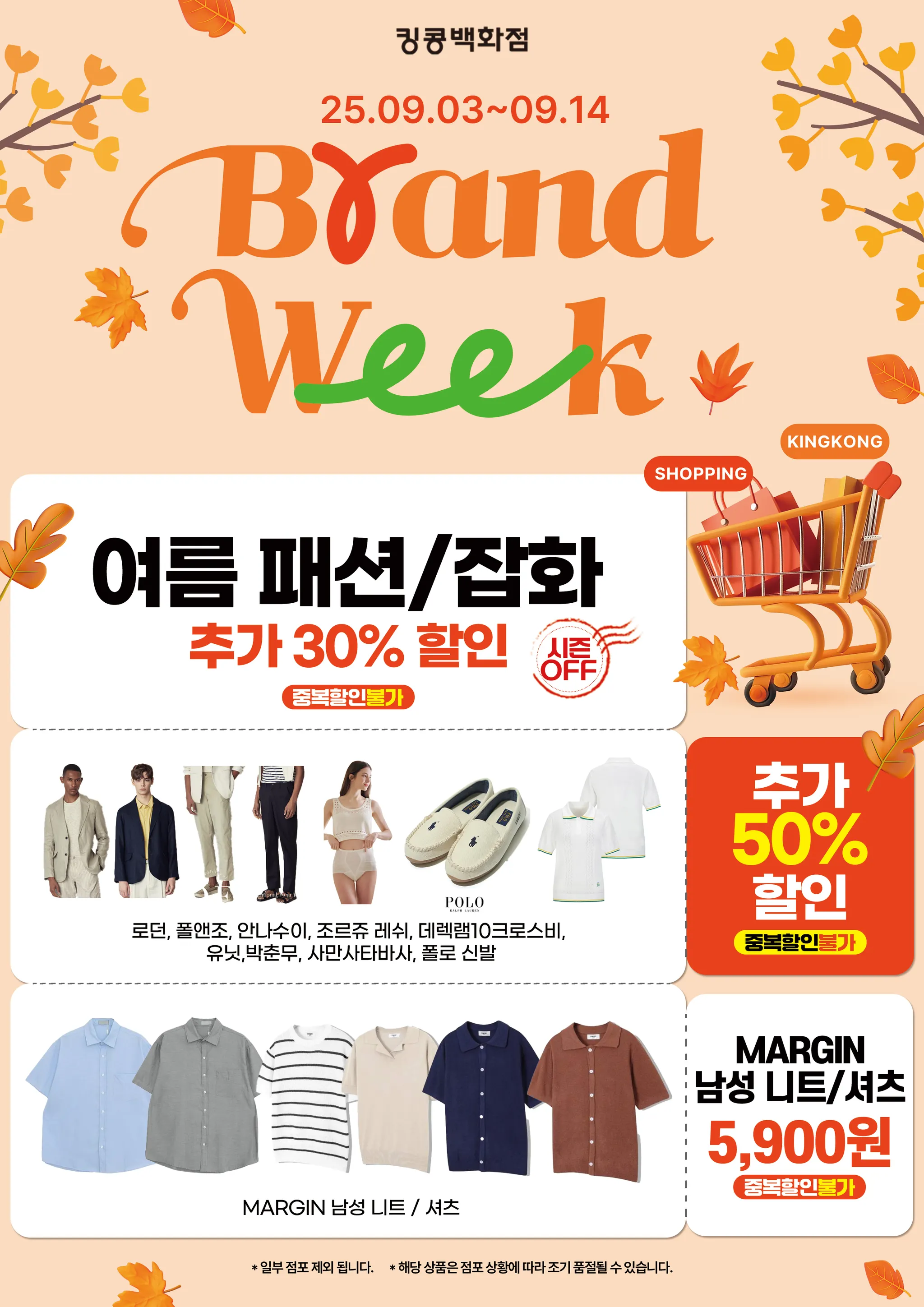 킹콩백화점 다가오는 가을, 9월 세일행사