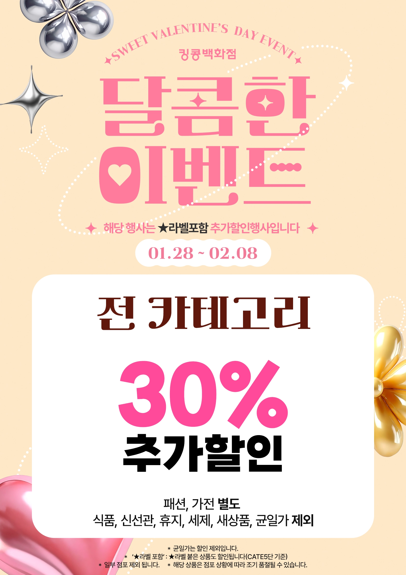 (패션·가전 별도 / 식품·신선관·휴지·세제·새상품·균일가 제외)