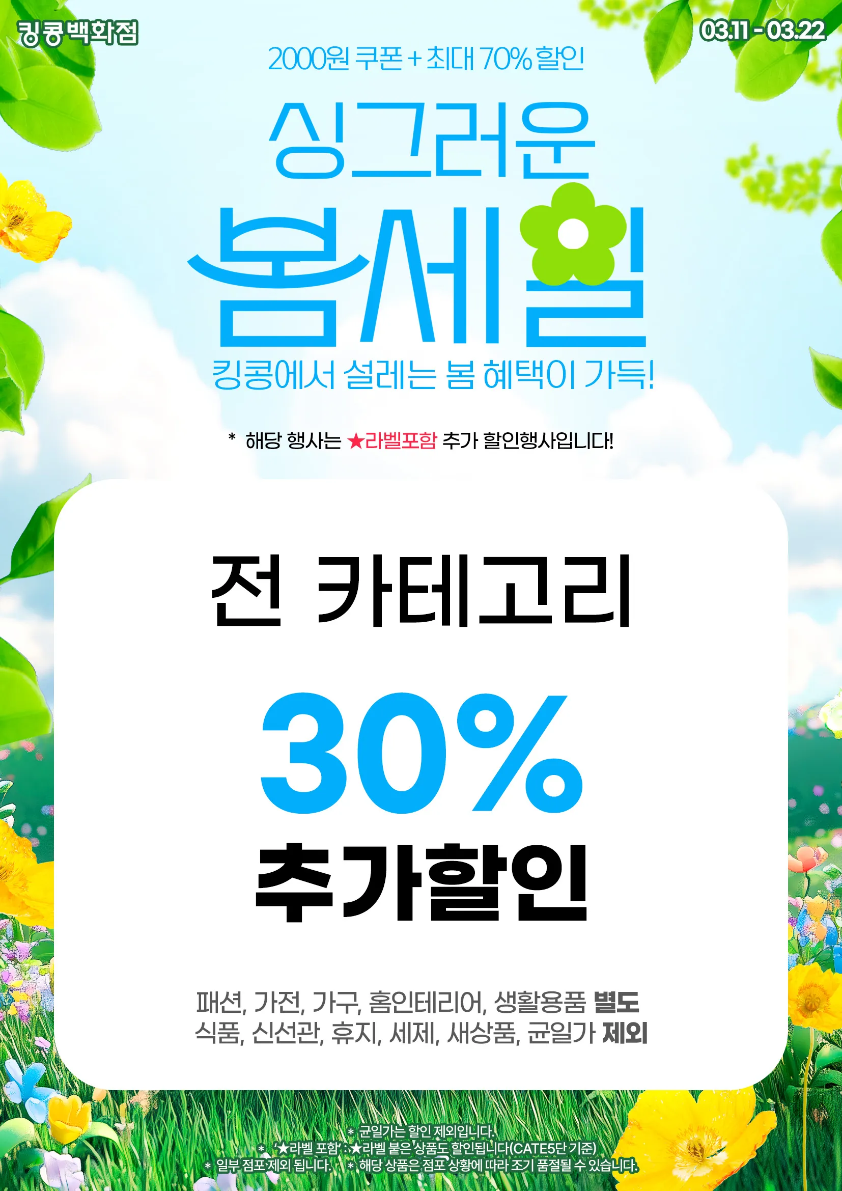 (패션, 가전, 가구, 홈인테리어 별도 / 식품, 신선관, 휴지, 세제, 새상품, 균일가 제외)