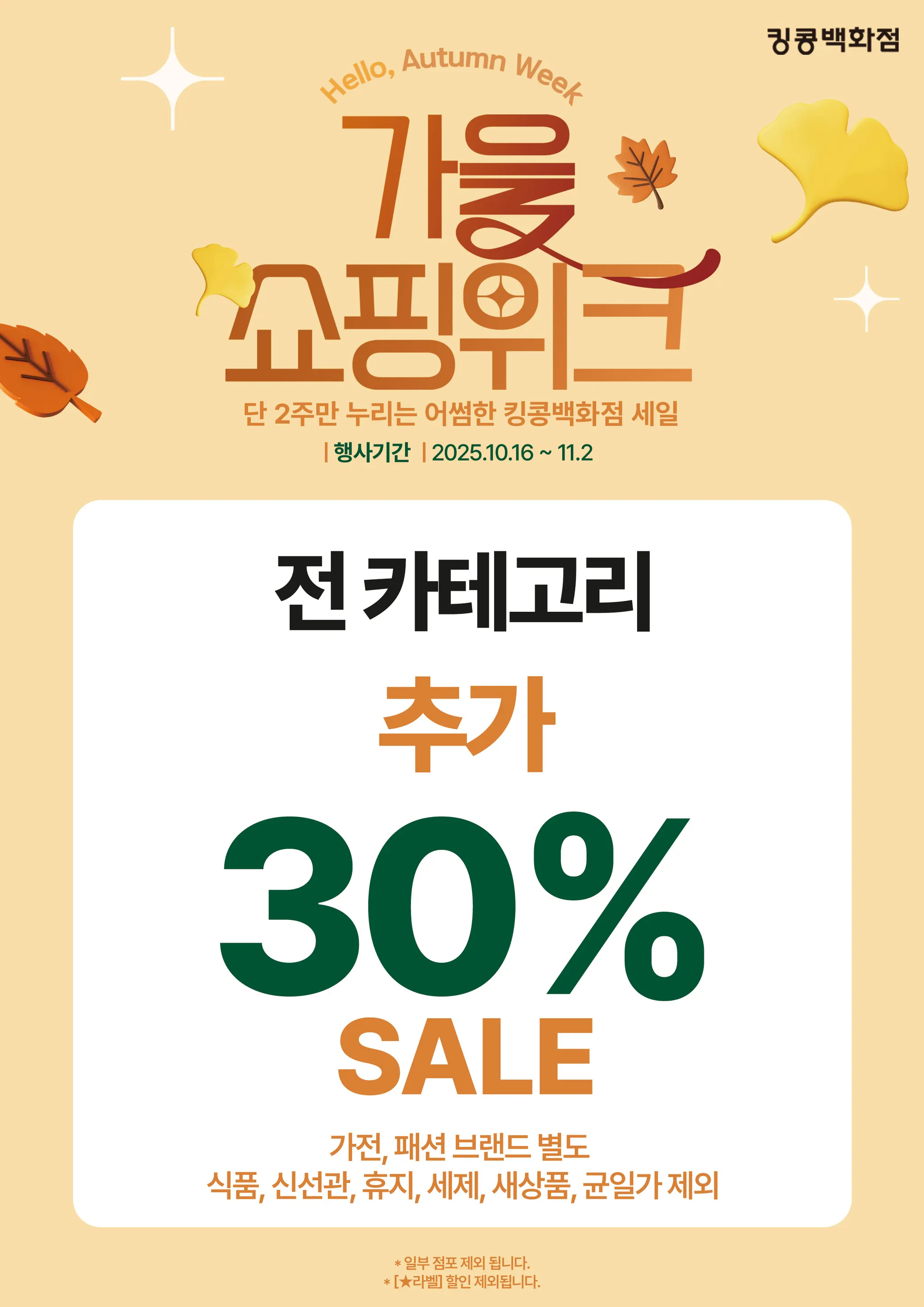 킹콩백화점 다가오는 가을, 9월 세일행사