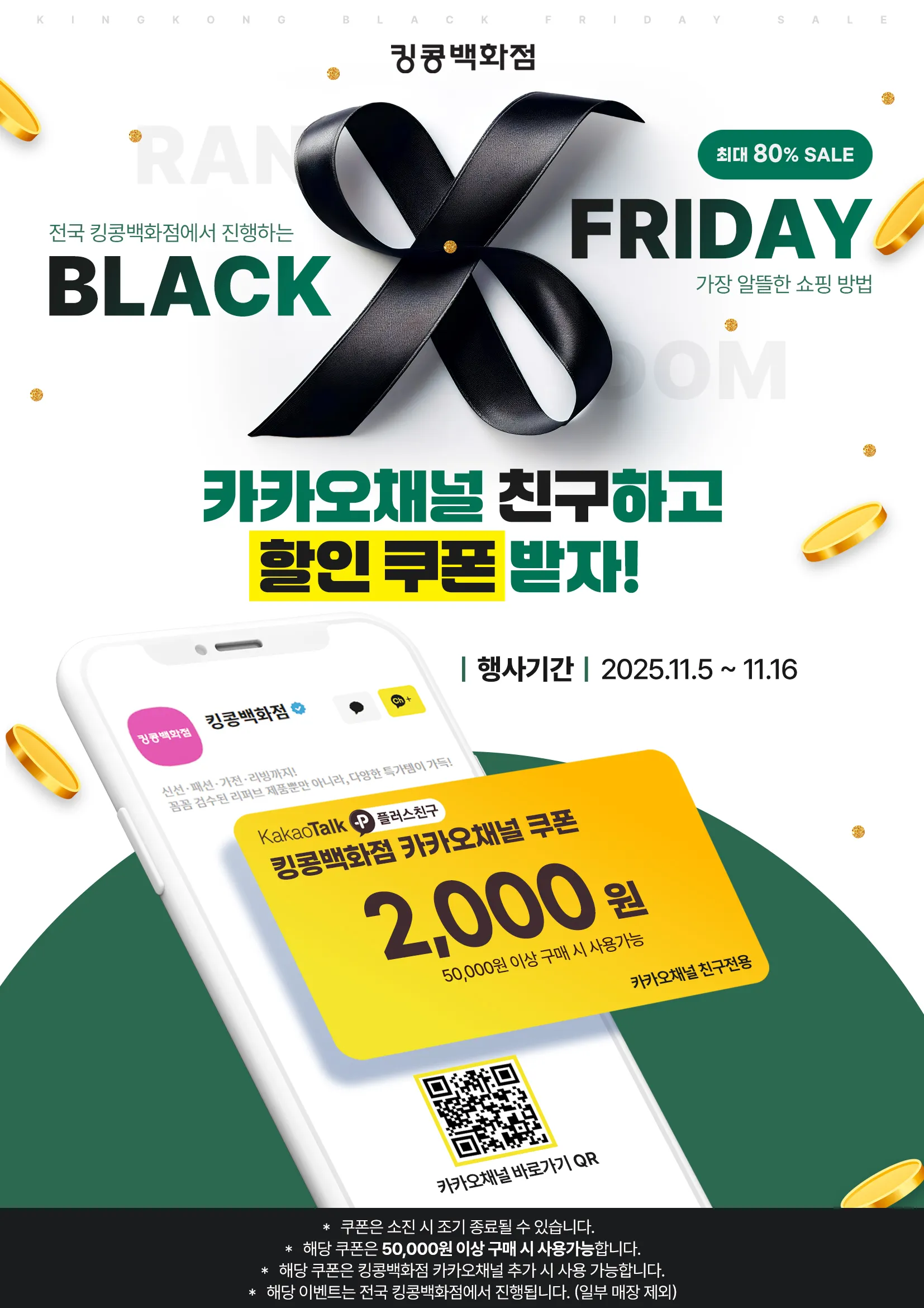 킹콩백화점 11월 2,000원 할인쿠폰 증정