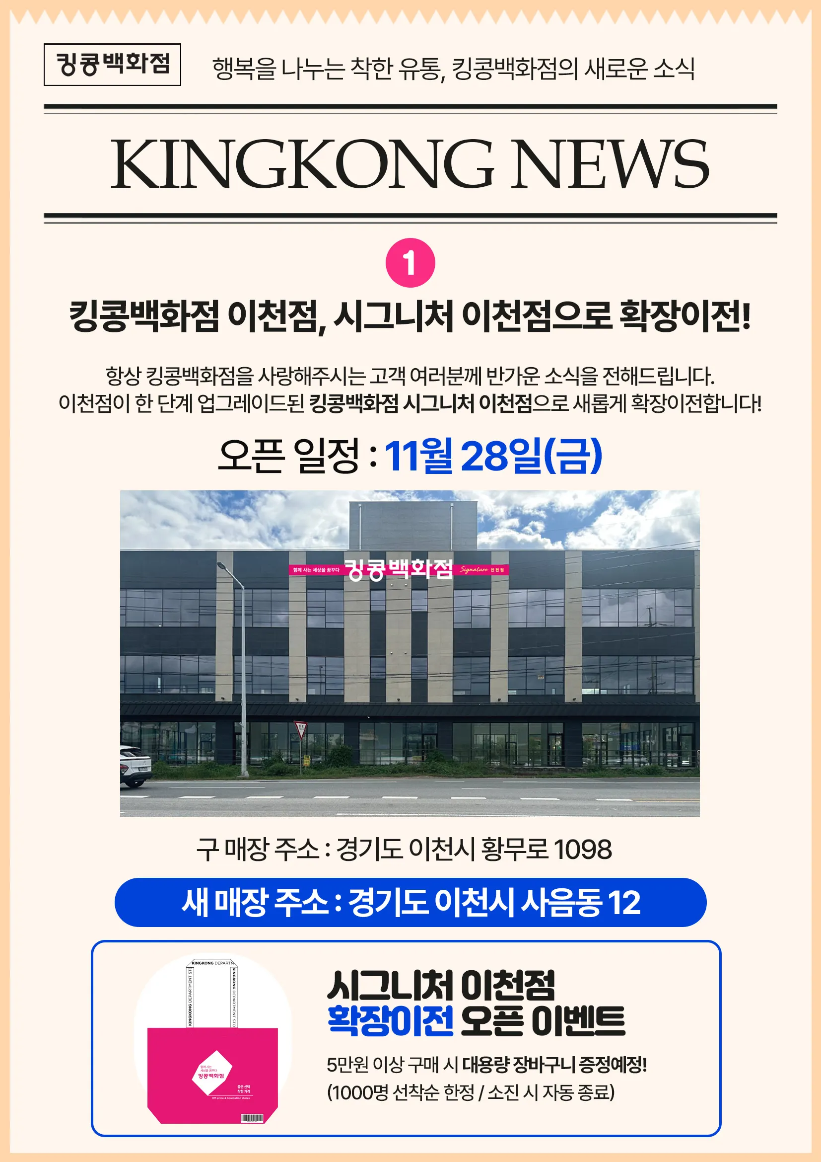 킹콩백화점 시그니처 인천점 오픈 기념으로 단독행사를 진행합니다!