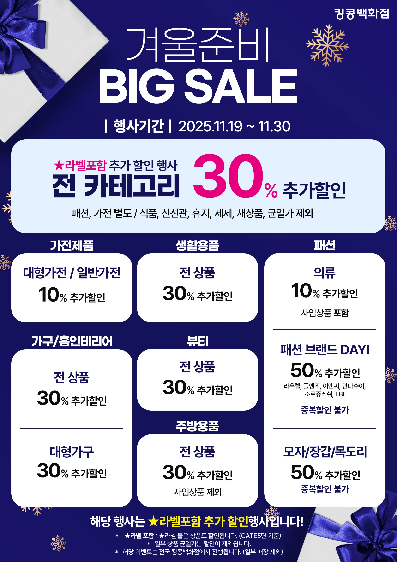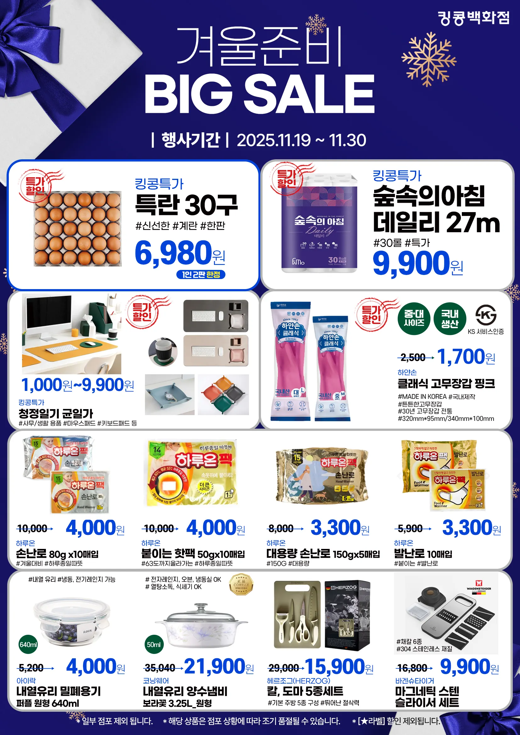 추워지는 날씨, 겨울 준비를 위한 킹콩백화점 역대급 할인!!